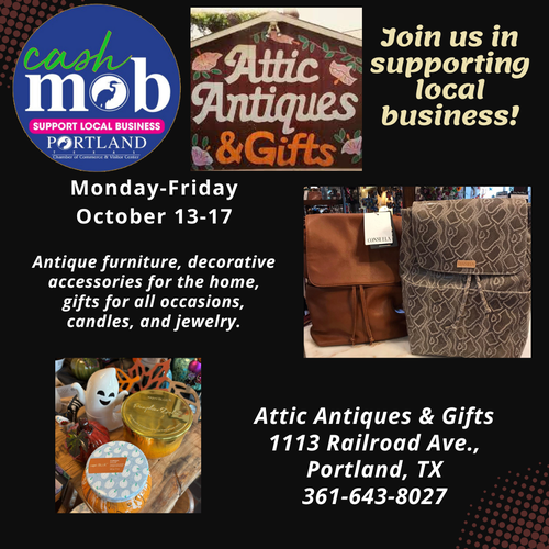 Join us as we shop local with this month's Cash Mob at Attic Antiques! Cash Mob is a local, neighborhood effort to gather community members with the purpose of supporting small businesses. Each "mobber" is asked to spend $20 at the business.