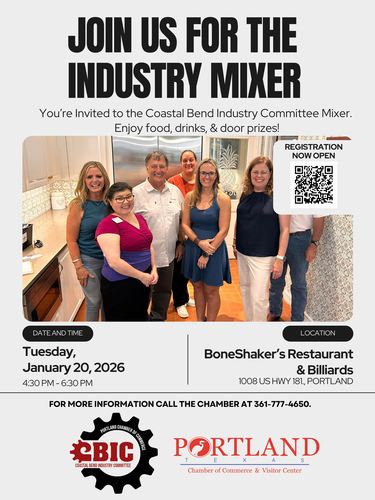 Join us for the Industry Mixer! You're invited to the Coastal Bend Industry Committee Mixer. Enjoy food, drinks, & door prizes!