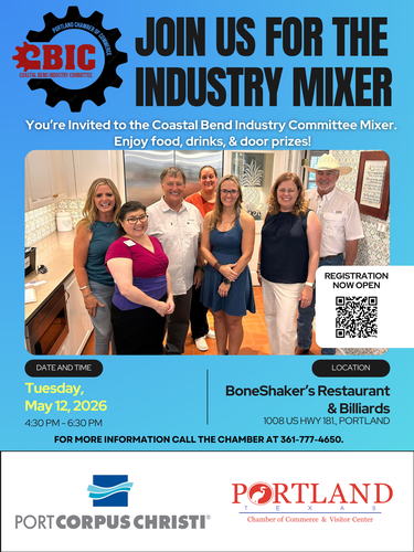 Join us for the Industry Mixer! You're invited to the Coastal Bend Industry Committee Mixer sponsored by The Port of Corpus Christi. Enjoy food, drinks, & door prizes!