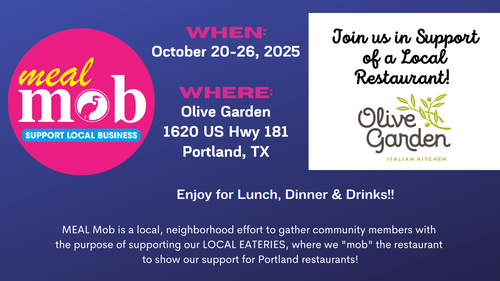 Join us as we shop local at Olive Garden! Meal Mob is a local, neighborhood effort to gather community members with the purpose of supporting our local eateries. Each "mobber" is asked to spend $20 at the restaurant.