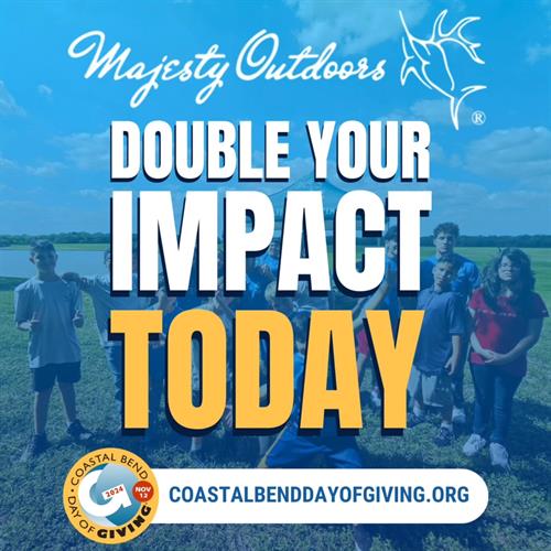 Right now, we have a unique chance to make an even greater impact. During the Coastal Bend Day of Giving, every donation made to Majesty Outdoors between October 27 and November 4 will be matched up to $25,400, doubling your generosity.